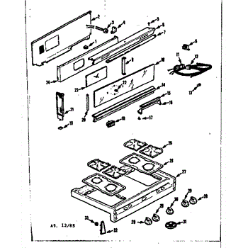 Parts for Kenmore 103.7346640 (1037346640, 103 7346640): Backguard & Main Top Parts