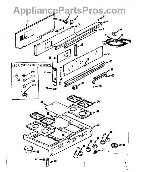 Parts for Kenmore 103.7426602 (1037426602, 103 7426602): Backguard And Main Top Parts