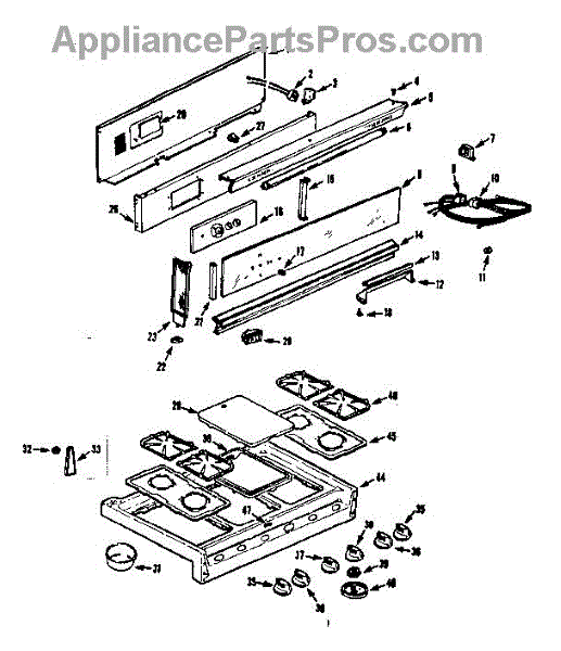 Parts for Kenmore 103.7446600 (1037446600, 103 7446600): Backguard And Main Top Section Parts