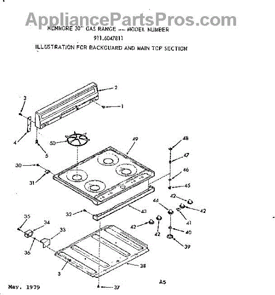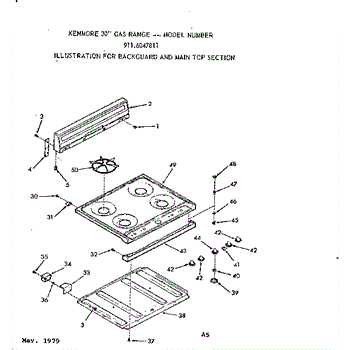 Parts for Kenmore 911.6047811 (9116047811, 911 6047811): Backguard And Main Top Section Parts