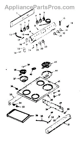 Parts for Kenmore 911.6217410 (9116217410, 911 6217410): Backguard And Main Top Section Parts