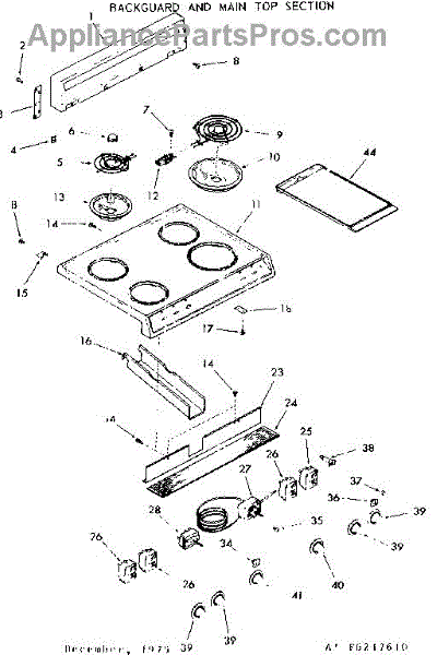 Parts for Kenmore 911.6217660 (9116217660, 911 6217660): Backguard And Main Top Section Parts
