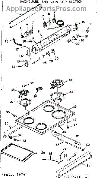 Parts for Kenmore 911.6227421 (9116227421, 911 6227421): Backguard & Main Top Section Parts