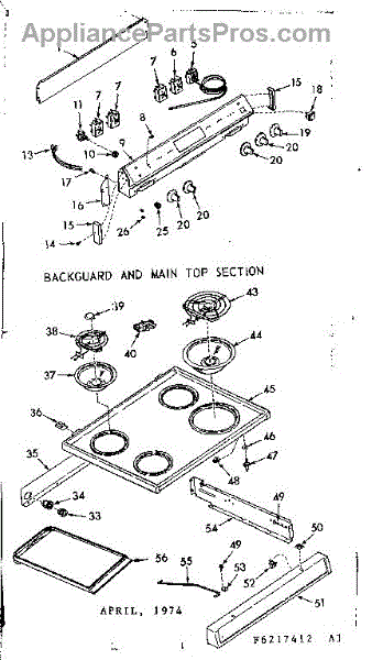 Parts for Kenmore 911.6227442 (9116227442, 911 6227442): Backguard & Main Top Section Parts