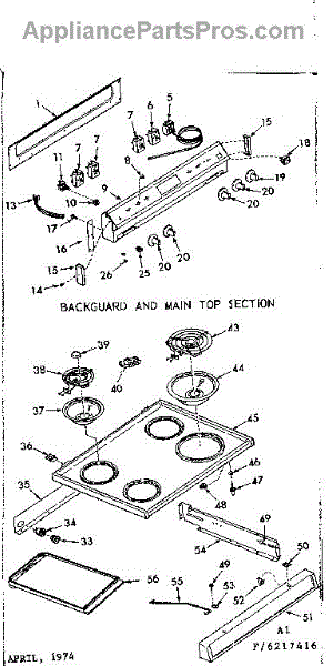 Parts for Kenmore 911.6317446 (9116317446, 911 6317446): Backguard And Main Top Section Parts