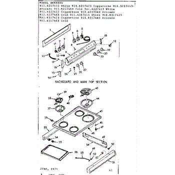 Parts for Kenmore 911.6327463 (9116327463, 911 6327463): Backguard & Main Top Section Parts