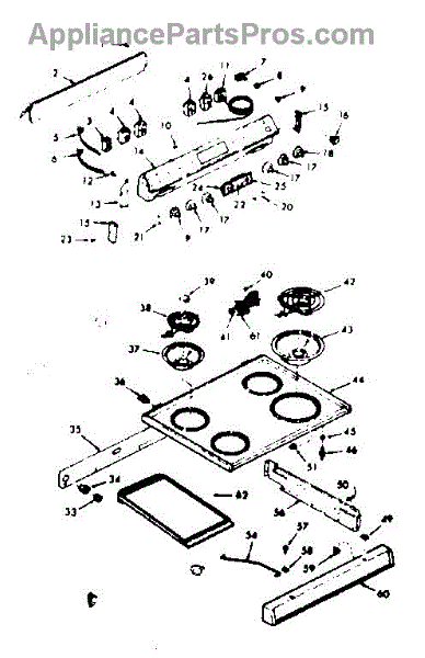 Parts for Kenmore 911.6387324 (9116387324, 911 6387324): Backguard And Main Top Section Parts