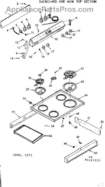 Parts for Kenmore 911.9127510 (9119127510, 911 9127510): Backguard & Main Top Section Parts