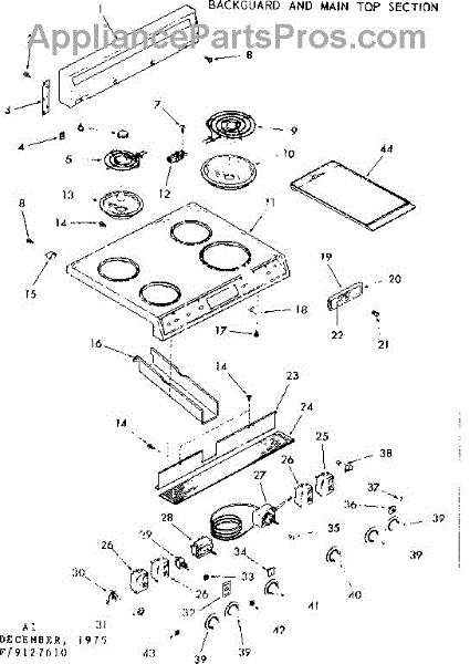 Parts for Kenmore 911.9127610 (9119127610, 911 9127610): Backguard And Main Top Section Parts