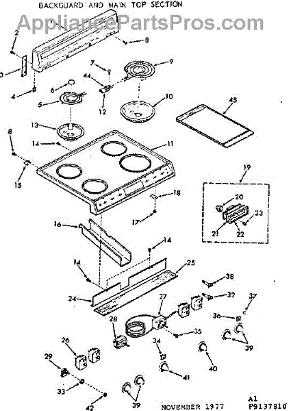 Parts for Kenmore 911.9137810 (9119137810, 911 9137810): Backguard And Main Top Section Parts
