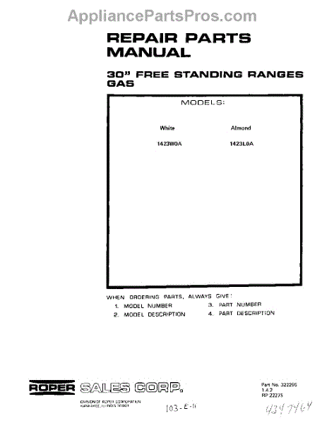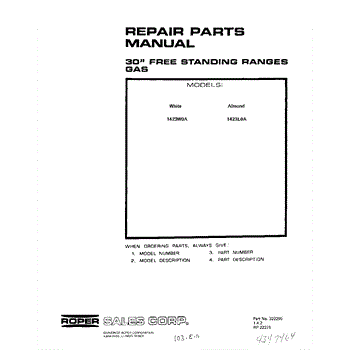 Parts for Roper 1423W0A: 01 - Backguard And Main Top Parts