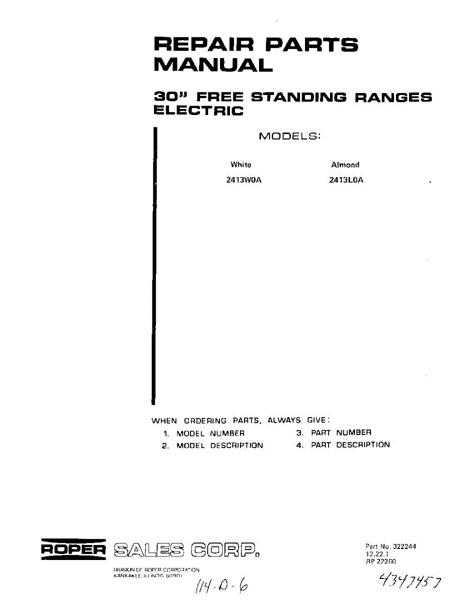 Roper Range Parts