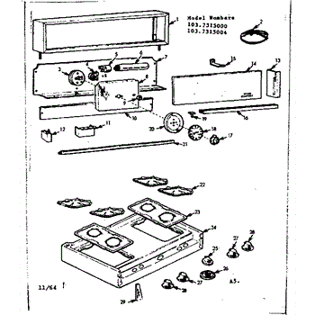 Parts for Kenmore 103.7315000 (1037315000, 103 7315000): Backguard And Maintop Parts