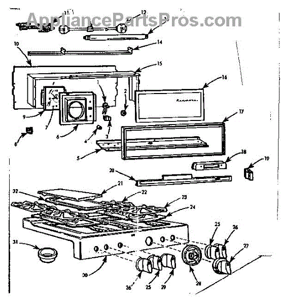 Parts for Kenmore 103.731620 (103731620, 103 731620): Backguard And Maintop Parts