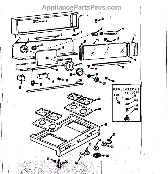 Parts for Kenmore 103.7316602 (1037316602, 103 7316602): Backguard And Maintop Parts