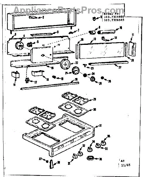 Parts for Kenmore 103.7326600 (1037326600, 103 7326600): Backguard And Maintop Parts