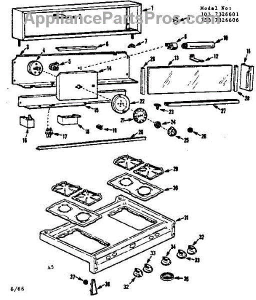 Parts for Kenmore 103.7326601 (1037326601, 103 7326601): Backguard And Maintop Parts