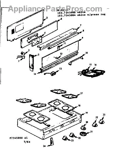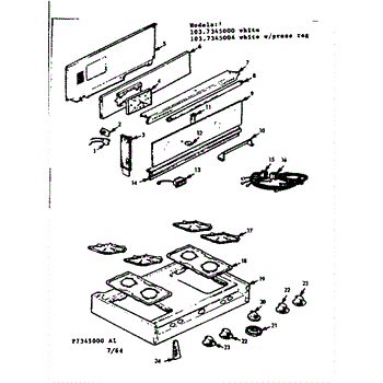 Parts for Kenmore 103.7345000 (1037345000, 103 7345000): Backguard And Maintop Parts