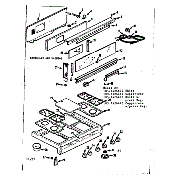 Parts for Kenmore 103.7426600 (1037426600, 103 7426600): Backguard And Maintop Parts