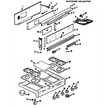 Parts for Kenmore 103.7666601 (1037666601, 103 7666601): Backguard And Maintop Parts