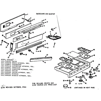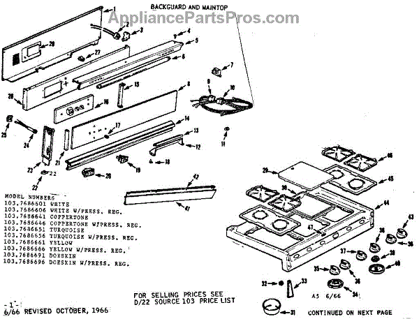 Parts for Kenmore 103.7686651 (1037686651, 103 7686651): Backguard And Maintop Parts