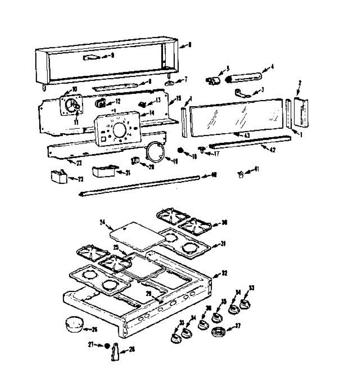 Parts for Kenmore 103.7366605 (1037366605, 103 7366605): Backguard And Maintop Section Parts
