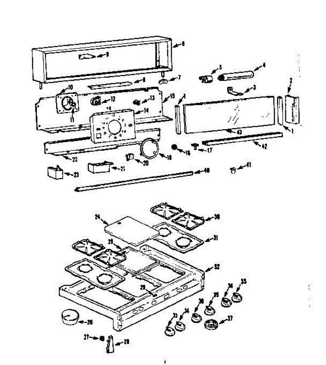 Parts for Kenmore 103.7366606 (1037366606, 103 7366606): Backguard And Maintop Section Parts