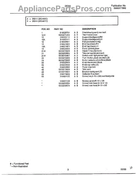 Parts for Frigidaire 283447C: Backguard Page 2 Parts