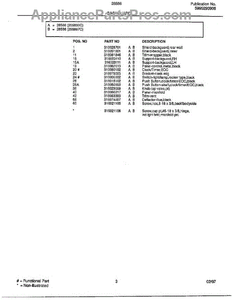 Parts for Frigidaire 285860C: Backguard Page 2 Parts