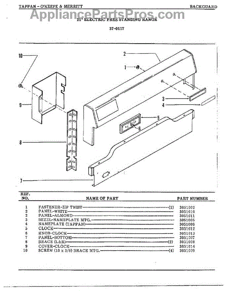 Parts for Frigidaire 37-0117: Backguard Page 2 Parts
