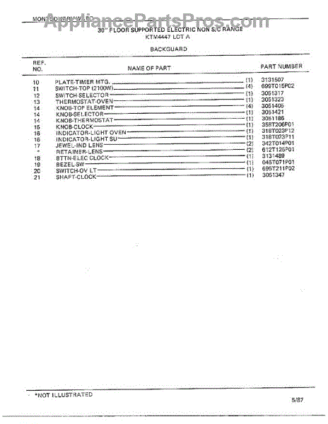 Parts for Frigidaire 4447A: Backguard Page 2 Parts