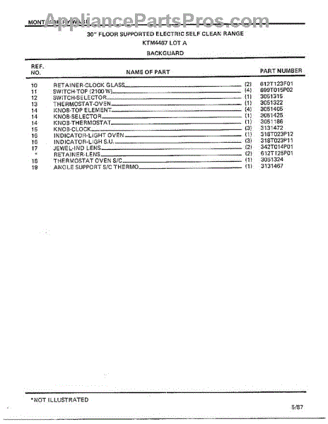 Parts for Frigidaire 4467A: Backguard Page 2 Parts