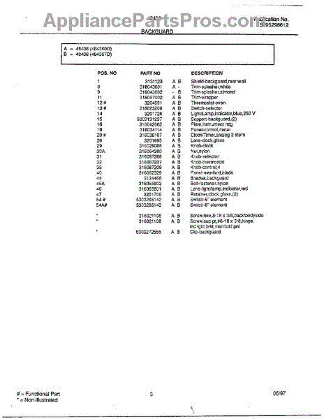 Parts for Frigidaire 484367D: Backguard Page 2 Parts
