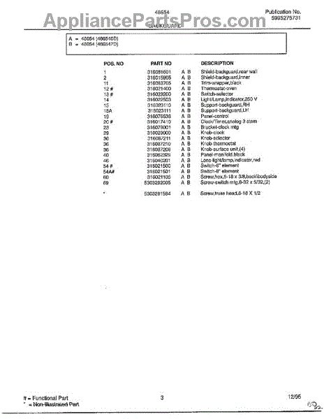 Parts for Frigidaire 486547D: Backguard Page 2 Parts