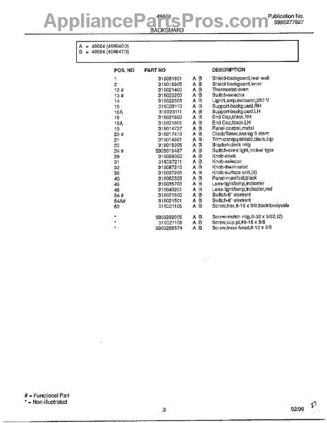 Parts for Frigidaire 486640D: Backguard Page 2 Parts