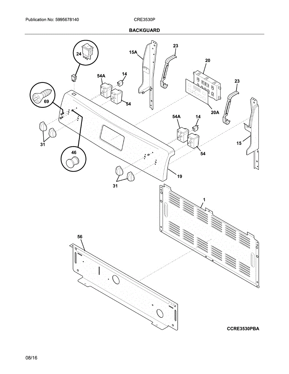 Parts for Crosley CRE3530PBD: Backguard Parts