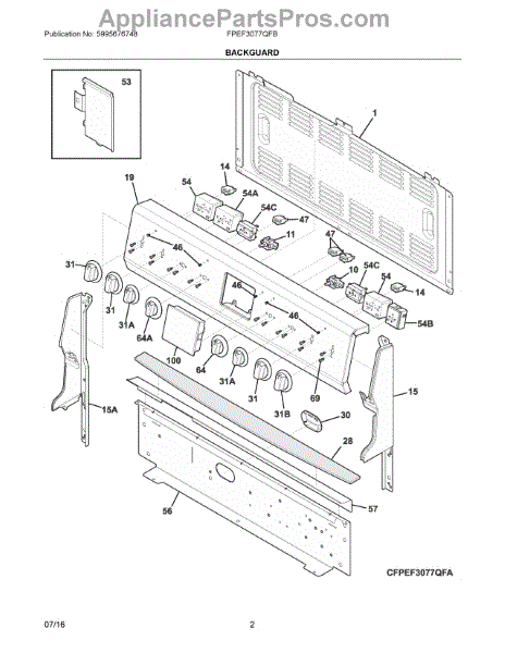 Parts for Electrolux FPEF3077QFB: 02 - Backguard Parts