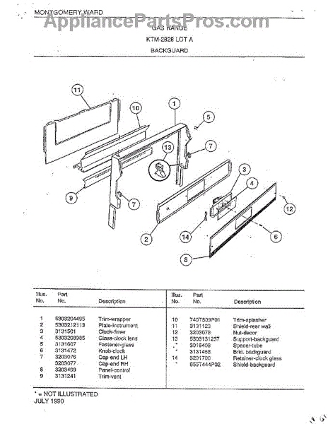 Parts for Frigidaire 2828A: Backguard Parts