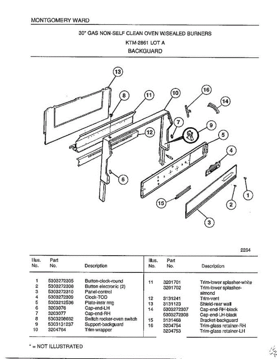 Parts for Frigidaire 2861A: Backguard Parts