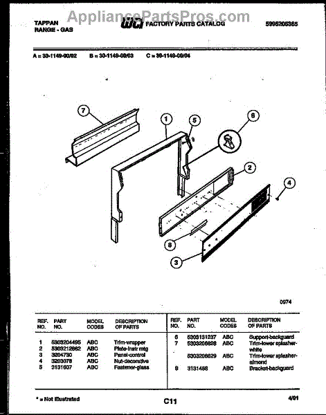 Parts for Frigidaire 30-1149-00-04: 02 - Backguard Parts