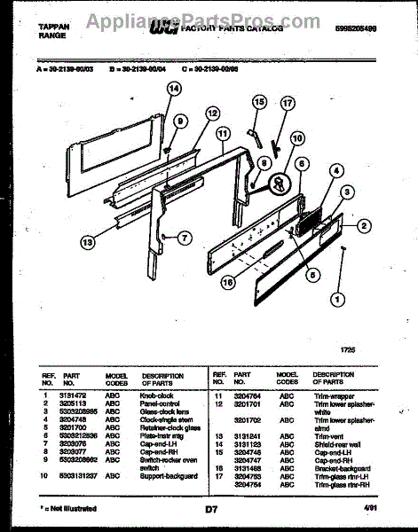 Parts for Frigidaire 30-2139-00-03: 02 - Backguard Parts