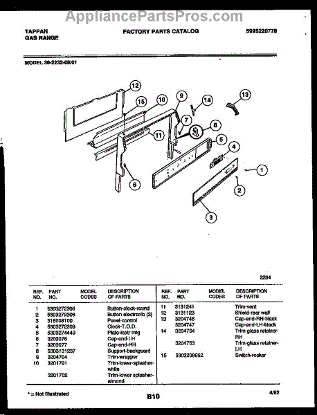 Parts for Frigidaire 30-2232-23-01: 02 - Backguard Parts