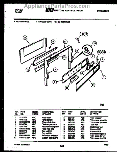 Parts for Frigidaire 30-2239-00-04: 02 - Backguard Parts