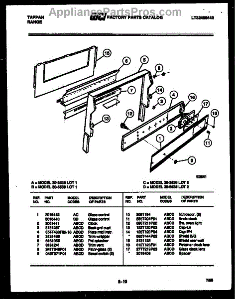 Parts for Frigidaire 30-2538-00-02: 03 - Backguard Parts