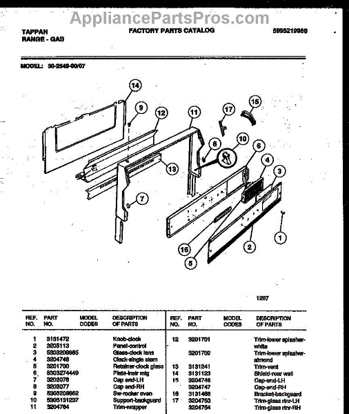 Parts for Frigidaire 30-2549-00-07: 02 - Backguard Parts