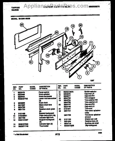 Parts for Frigidaire 30-3851-00-05: 02 - Backguard Parts