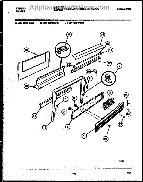 Parts for Frigidaire 30-4980-00-02: 02 - Backguard Parts