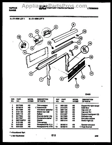 Parts for Frigidaire 30-6758-23-01: 02 - Backguard Parts