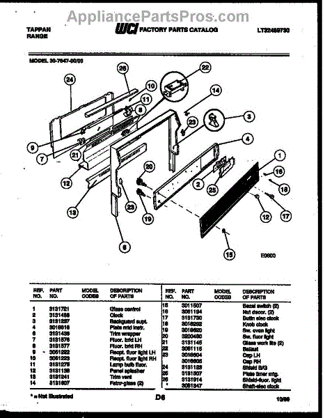 Parts for Frigidaire 30-7647-00-03: 02 - Backguard Parts