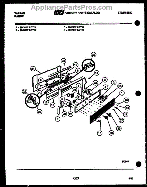 Parts for Frigidaire 30-7987-23-05: 02 - Backguard Parts